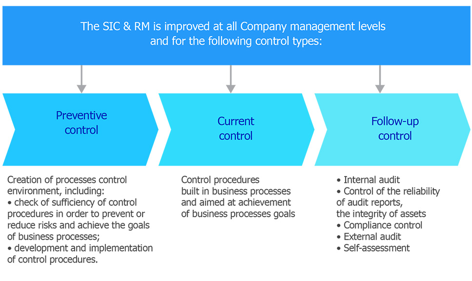 - updating of the regulatory documents regulating implementation of the internal control and risk management systems, internal audit (Internal Control Policy, Risk Management Policy, Internal Audit Policy, Regulation on the Audit Committee of the Board of Directors, etc.);