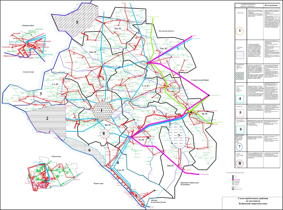 Схема проблемных районов на местности Кубанской энергосистемы
