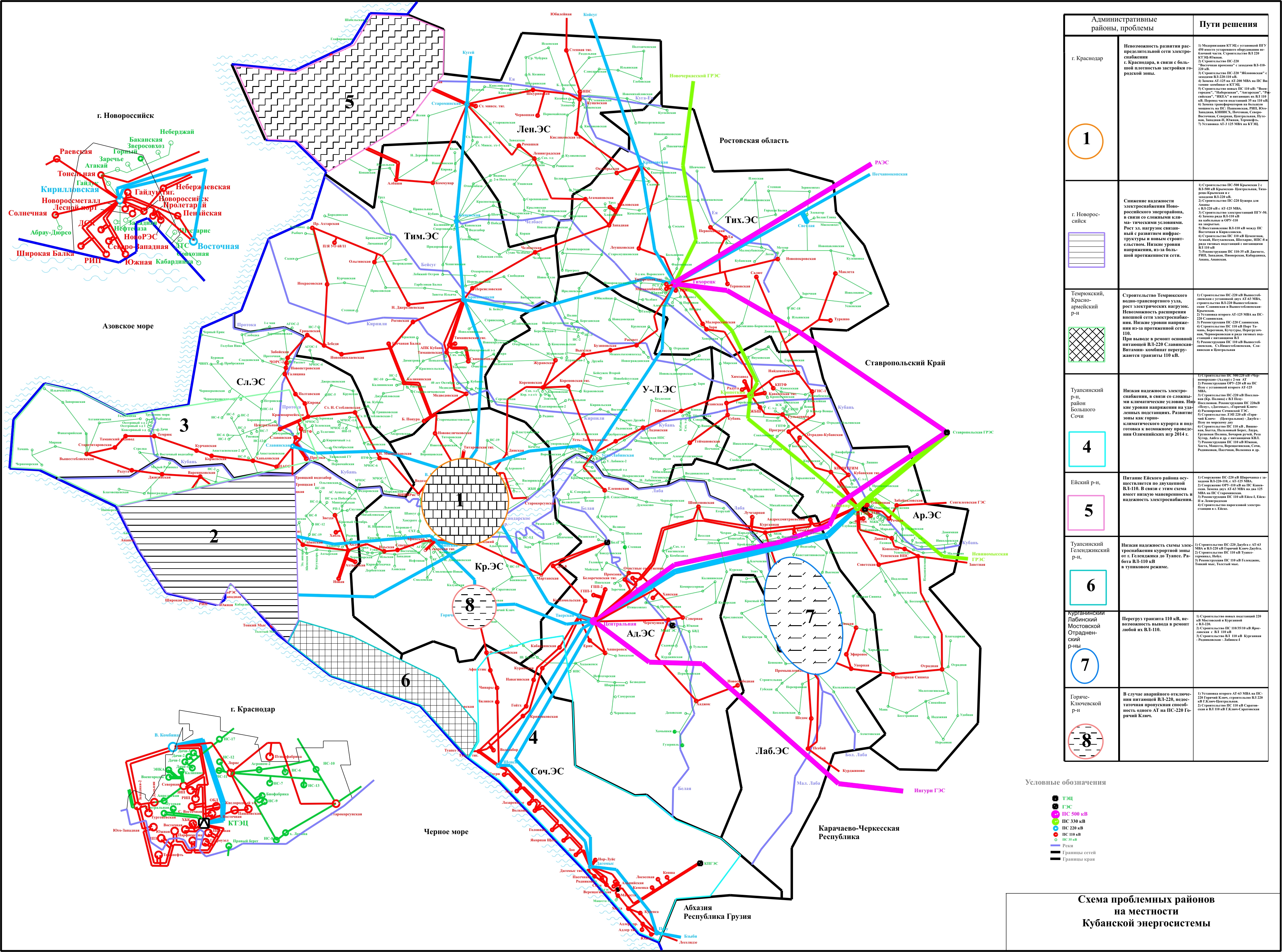 Местоположение и основные характеристики центров питания ПАО <Кубаньэнерго>