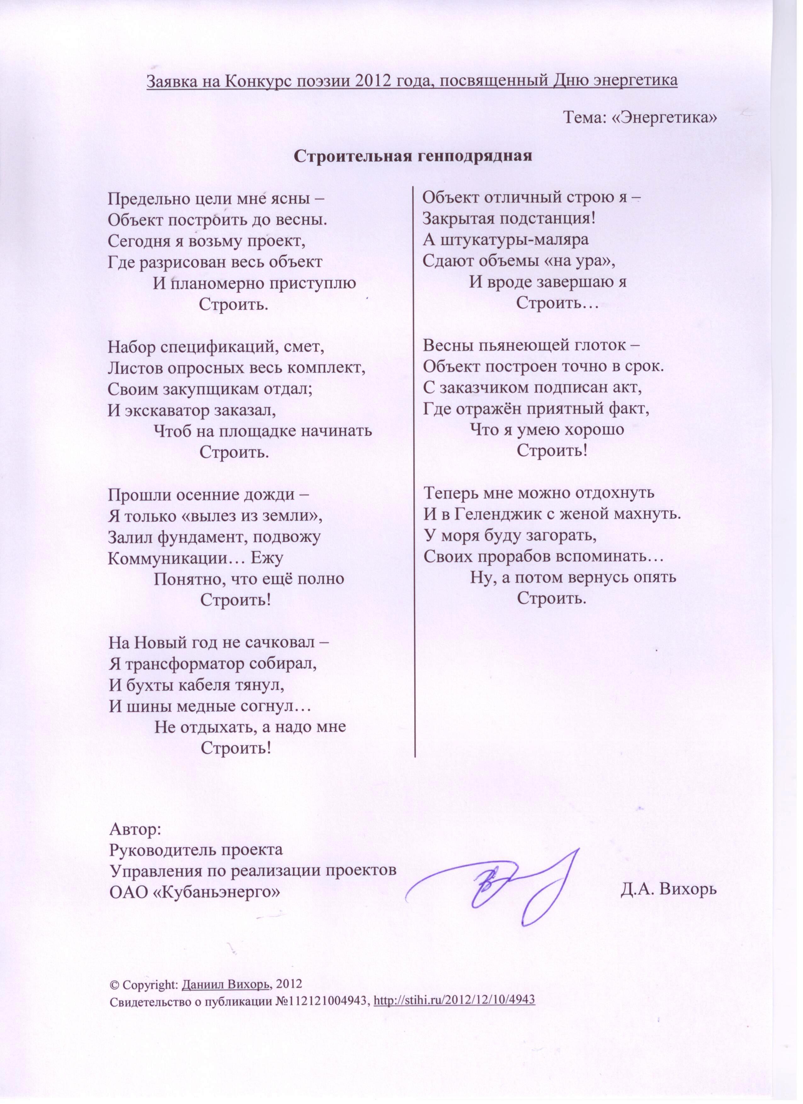 Во всех филиалах и исполнительном аппарате ОАО «Кубаньэнерго» в преддверии празднования Дня энергетика прошел конкурса поэзии, посвященный отрасли.